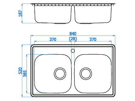 型號:621款式:雙盆安裝方式:嵌入式總尺寸:840*520 mm雙盆:370*385*187 mm