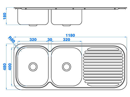 型號:112款式:單瀝水板雙盆安裝方式:嵌入式總尺寸:1180*480 mm雙盆:320*400*180 mm