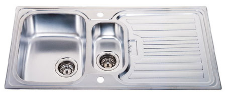型號(hào):148款式:單瀝水板雙盆安裝方式:平嵌式總尺寸:1080*480 mm大盆:340*400*190 mm小盆:280*290*130 mm
