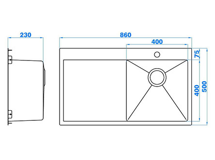 型號:5427款式:單瀝水板單盆安裝方式:嵌入式總尺寸:860*500 mm大盆:400*400*230 mm