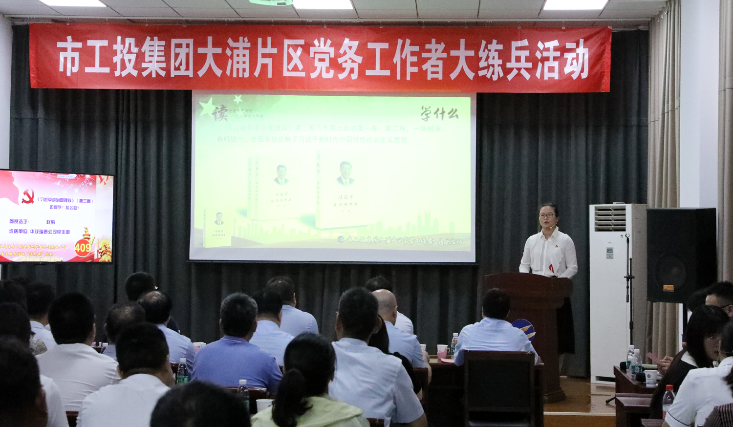 為進(jìn)一步提高基層黨務(wù)工作者“說、寫、做”能力,不斷提升基層黨建規(guī)范化建設(shè)水平,9月4日下午,集團(tuán)公司黨委在神特新材料公司開展大浦片區(qū)黨建結(jié)對(duì)共建單位黨務(wù)工作者大練兵活動(dòng)。市委組織部黨員教育中心主任許志青、市國資委黨群工作處處長閆超群、集團(tuán)公司黨委副書記戴鴻鳴等出席活動(dòng)。 本次大練兵活動(dòng)立足“以考強(qiáng)兵,破解理論不精;以講練兵,確解業(yè)務(wù)不足”,由公文撰寫和現(xiàn)場“說黨課”比賽兩部分組成,來自大浦片區(qū)黨建共建單位9個(gè)黨支部的10名基層黨務(wù)工作者同臺(tái)競技,展示風(fēng)采。