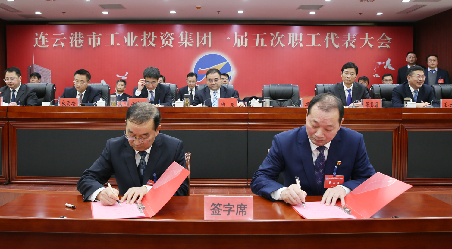 藍圖繪就,正當揚帆破浪;重任在肩,更須策馬揚鞭。1月14日上午9時,在雄壯的國歌聲中,集團公司一屆五次職工代表大會在總部隆重召開,來自各條戰線的職工代表肩負全體工投人的重托,齊聚一堂,共商企業發展大計。黨委書記、董事長楊龍作講話,總經理胡建明作工作報告。黨委副書記戴鴻鳴、工會主席劉承志分別主持大會。集團公司領導楊國新、張其海、朱天松、王士華、汪群、匡友本、陳如軍在主席臺前排就座。