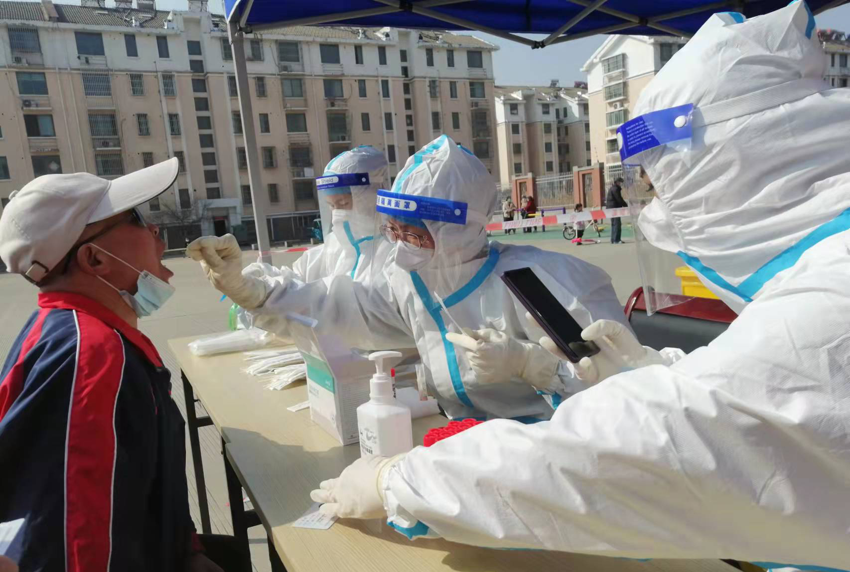 “現(xiàn)在我們是封控區(qū),不能出去給政府添亂,閑也是閑著,所以社區(qū)一招手我們就來了”這是臺(tái)北女工委副主任宋文靜的一席話。這波疫情來的突然,緊急核酸檢測(cè)緊缺志愿者服務(wù)。在公司”戰(zhàn)疫情、爭(zhēng)貢獻(xiàn)“主題實(shí)踐活動(dòng)感召下,她已經(jīng)在小區(qū)擔(dān)綱核酸檢測(cè)志愿者有兩個(gè)夜晚了。而這一幕決不只在海州主城區(qū),在開發(fā)區(qū)昌圩社區(qū),臺(tái)北志愿服務(wù)隊(duì)已經(jīng)成為社區(qū)防疫主力。疫情伊始,臺(tái)北下屬海州灣公司黨支部一班人就已經(jīng)奮戰(zhàn)在社區(qū)防疫一線。黨支部副書記蘇玲、女工胡超,與專業(yè)醫(yī)護(hù)人員一道,穿上厚重防護(hù)服,直接站在核酸檢測(cè)最前線,這一站就是12小時(shí)。值班后稍作休息他們就又聯(lián)系總經(jīng)理霍正鋼、翔立黨支部副書記姜海洋、入黨積極分子朱文健等參與聯(lián)防聯(lián)控,擔(dān)當(dāng)疫情義務(wù)宣傳員。
