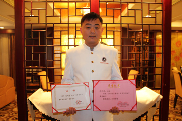 由共青團江蘇省委員會、江蘇省烹飪協(xié)會聯合舉辦的2015年度“江蘇省十大青年名廚”評選活動的結果,日前在蘇州開幕的江蘇省第二屆廚師節(jié)上揭曉,淮鹽大酒店廚師長陳明生被評為“江蘇省十大青年名廚”,他還同時被共青團江蘇省授予“江蘇省青年崗位能手”稱號。此次活動參評選手須是江蘇省烹飪大師或江蘇省烹飪名師以上,具有技師或高級技師技術職稱,且年齡在35周歲以下的青年廚師。由專家評審團根據選手參加賽事獲獎情況及為全省或地方等方面進行綜合評估,最終評出江蘇省十大青年名廚。(陳明生)