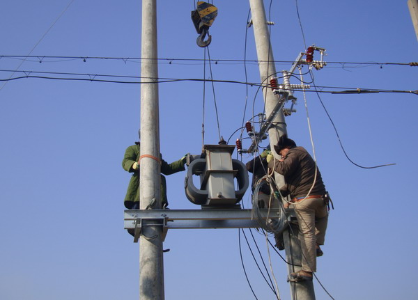 黃化制鈣公司居民區(qū)已有三十多年歷史,目前居住400多戶居民。由于使用年久老化,變壓器容量小、供電半徑大,線路長、線徑細(xì),電壓不穩(wěn),供電效率低。加上居民生活水平提高,用電量增加,供電矛盾日益突出,嚴(yán)重影響空調(diào)、冰箱等家用電器正常使用,居民意見很大??紤]到這項(xiàng)工程需投資資金較大,而老居民區(qū)情況復(fù)雜、經(jīng)濟(jì)上大多比較困難,為快速化解居民用電矛盾,讓他們過上祥和、舒心的春節(jié),臺(tái)北供電所自籌資金,領(lǐng)導(dǎo)親自到現(xiàn)場(chǎng)勘察,擬定整改方案。該所人員全部出動(dòng),雇用工具車三臺(tái)、吊車兩輛,運(yùn)送一臺(tái)100千伏安變壓器、兩個(gè)配電箱和10根電桿,自帶導(dǎo)線等材料趕赴施工現(xiàn)場(chǎng)。在居民的支持和配合下,克服了巷口復(fù)雜、圍墻歪斜、樹枝凌亂、布局很不規(guī)則等困難,奮戰(zhàn)多日,安裝一臺(tái)新變壓器,將原來的一條線進(jìn)入改為三條線進(jìn)入,增加供電功率,擴(kuò)大供電容量。通過進(jìn)戶測(cè)試,均達(dá)到用電標(biāo)準(zhǔn),給居民帶來了冬天的溫暖。