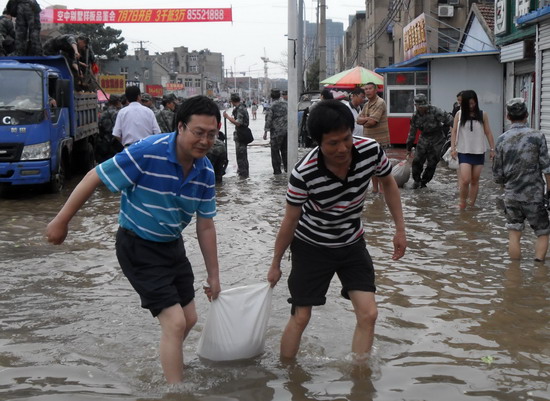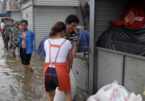近日,面對百年一遇的特大暴雨,巨龍市場職工吃住在市場,全力進行防汛排澇。 7月8日凌晨3點起,降雨強度大 、雨量大,巨龍農貿市場積水深度30公分,最深處達60公分,兩個配電房、經營出租房、職工宿舍等全部被淹。該單位立即啟動抗洪應急預案,全體職工幾天來吃住在抗洪工作一線,幫助經營戶轉移糧食,轉移被淹戶3家,建防洪堤6個; 對兩個配電房進行晝夜值班、排水。 據氣象部門預報,近日還將有暴雨過程。該單位密切監視,繼續加強市場巡查,加強排澇力度,確保市場安全度汛。(管長福)