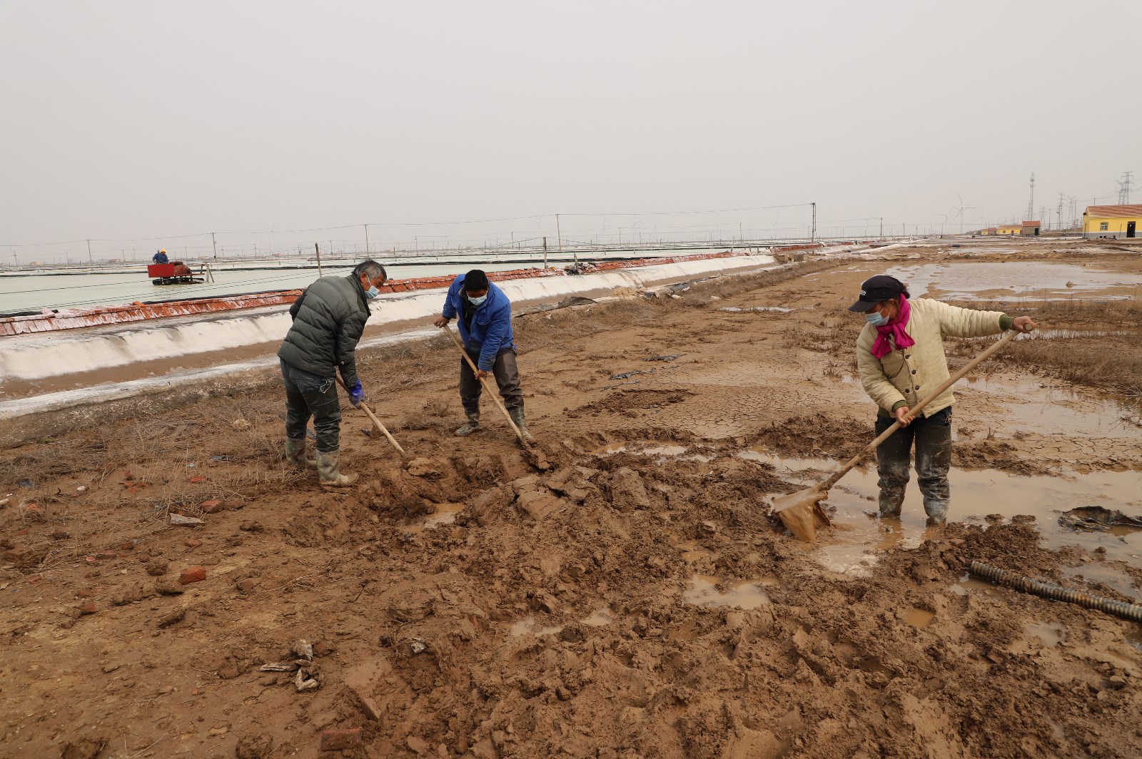3月28日清晨,在通往日曬制鹽新河、埒南分公司入口處,戴著口罩的工人們依次接受測(cè)溫、亮碼、登記,有序進(jìn)入各生產(chǎn)班組。灘頭上,工人們分散作業(yè),忙著修補(bǔ)塑造、整理廩基……無論是從灘頭到塘頭,還是從碼頭到田頭,處處都呈現(xiàn)出熱火朝天、大干快上的場(chǎng)景。