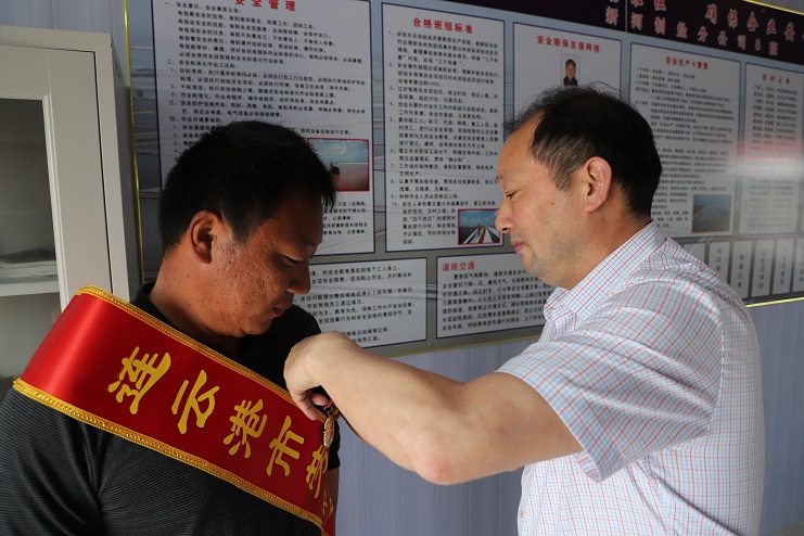 5月22日下午,公司董事長(zhǎng)、黨委書(shū)記李國(guó)文、紀(jì)委書(shū)記、工會(huì)主席王宏一行到新河制鹽分公司八班為獲得連云港市勞動(dòng)模范的祝星星綬帶佩章。