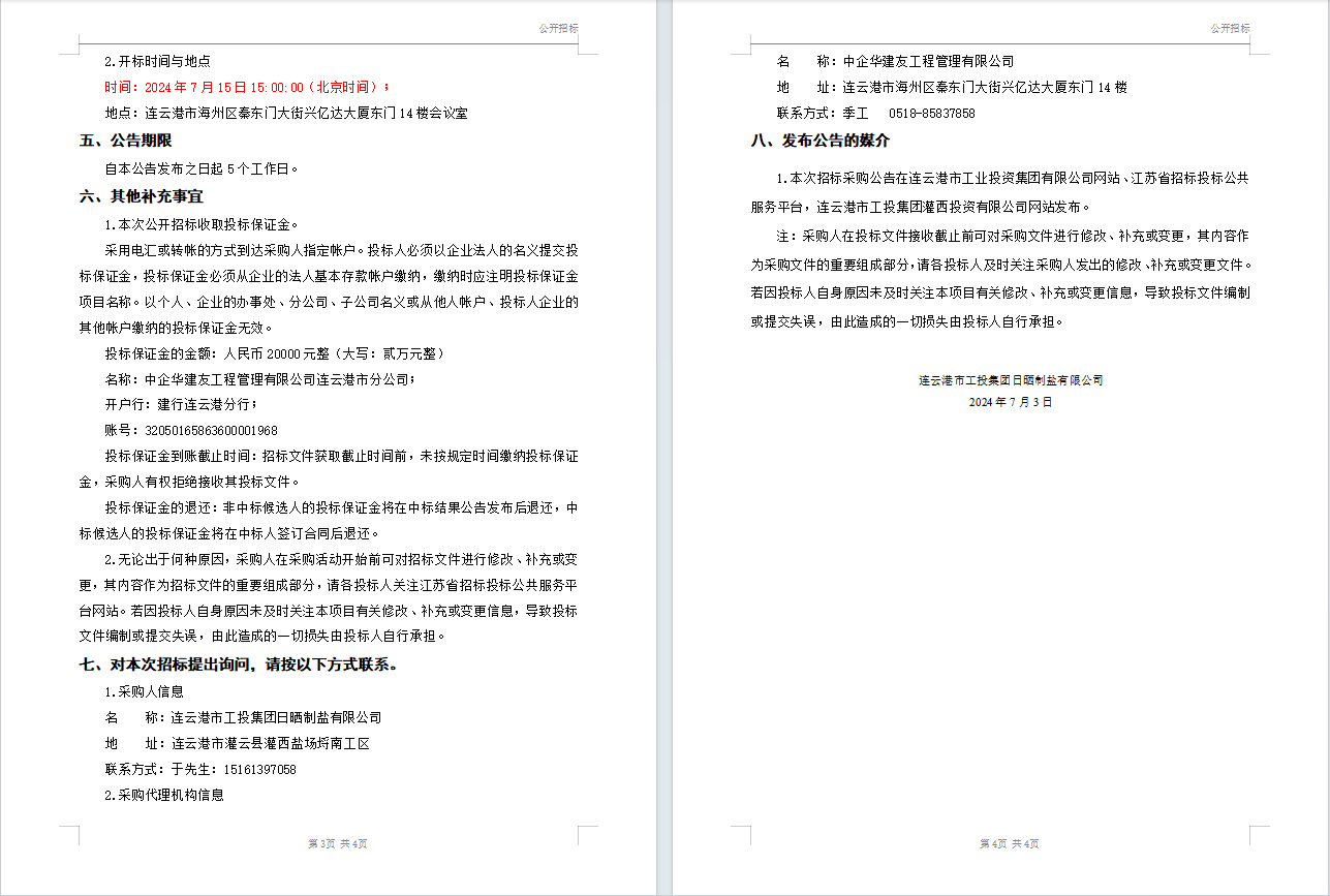 連云港市工投集團日曬制鹽有限公司液體氯化鈣(鈣液)采購招標(biāo)公告(二次)