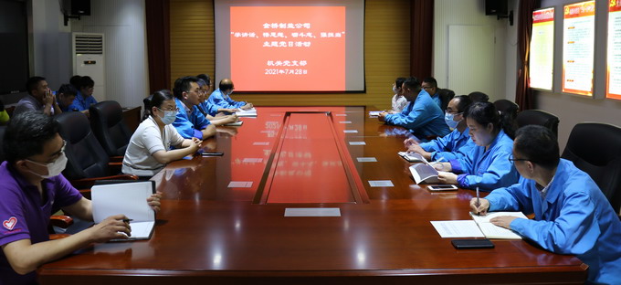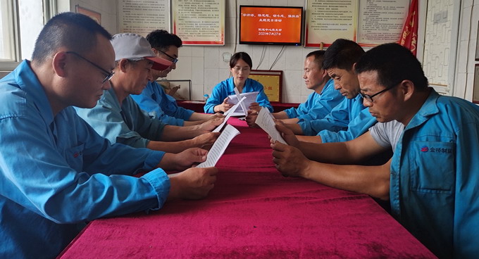按照市委組織部和集團(tuán)黨委通知要求,近日,金橋制鹽公司黨委組織各支部認(rèn)真開(kāi)展“學(xué)講話(huà)、悟思想、礪斗志、強(qiáng)擔(dān)當(dāng)”主題黨日活動(dòng)。