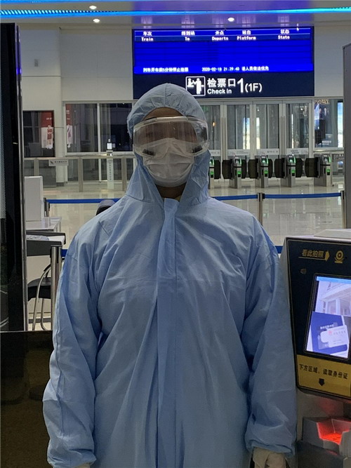 一天晚上,進(jìn)站口急匆匆來了一個(gè)女孩拖著3個(gè)大箱子,就差幾分鐘列車就要開了,女孩急著說,完了完了,趕不上火車了,朱詠梅協(xié)助醫(yī)護(hù)人員幫她測(cè)完體溫,顯示正常,朱詠梅拿起她的行李,幫助她進(jìn)行箱包檢查,檢票、上、下電梯……女孩一邊跑一邊和她說,她是去英國(guó)上學(xué)的,因這次疫情的影響,已經(jīng)3次被改簽了,如這次趕不上列車,可能再也沒有機(jī)會(huì)去上學(xué)了;朱詠梅在列車開動(dòng)前把她送上了車,女孩對(duì)她連聲感謝……