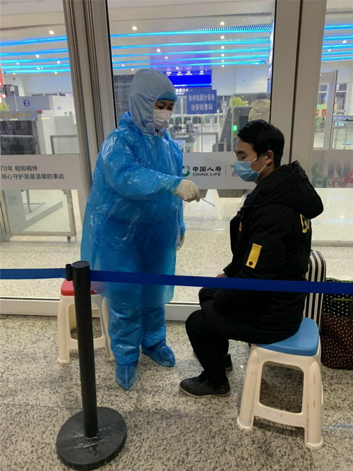 朱詠梅是來自江蘇金橋制鹽有限公司的普通員工,在連云港市志愿者協(xié)會(huì)的統(tǒng)一安排下,每天到連云港市高鐵站測(cè)溫點(diǎn)配合醫(yī)務(wù)人員為乘客檢測(cè)體溫,并協(xié)助醫(yī)務(wù)人員對(duì)體溫出現(xiàn)異常的乘客進(jìn)行復(fù)查。每天的服務(wù)都到深夜零點(diǎn),等到送走最后一位乘客才回家。