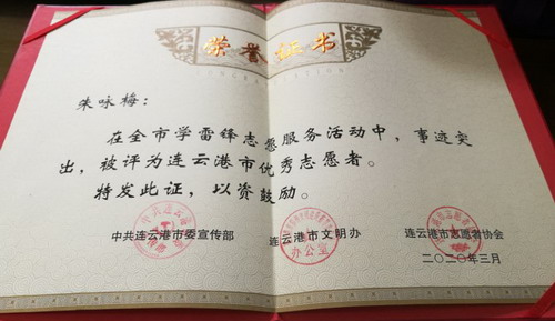參加疫情防控志愿服務(wù)以來,朱詠梅一天都沒有休息,已為超過2萬名旅客檢測(cè)體溫。由于事跡突出,在全市學(xué)雷鋒志愿服務(wù)活動(dòng)中,被評(píng)為連云港市優(yōu)秀志愿者。工作期間,渴了不敢喝水,餓了就吃泡面,雖然很辛苦,但是她覺得很自豪,她說:“我是一名預(yù)備黨員,也是一名國(guó)企職工,比起那些奮戰(zhàn)在疫情防控一線的醫(yī)務(wù)人員,我做的太少了;當(dāng)前,全國(guó)人民都投入到新冠肺炎疫情防控工作中來,我只是為防控工作貢獻(xiàn)了自己的微薄的力量,我相信只要我們團(tuán)結(jié)一心、眾志成城,就一定能早日戰(zhàn)勝疫情,早日打贏這場(chǎng)沒有硝煙的戰(zhàn)爭(zhēng)!(凌家佳)