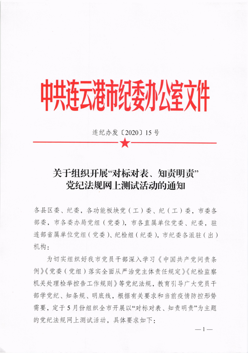 關于組織開展“對標對表、知責明責”黨紀法規網上測試活動的通知