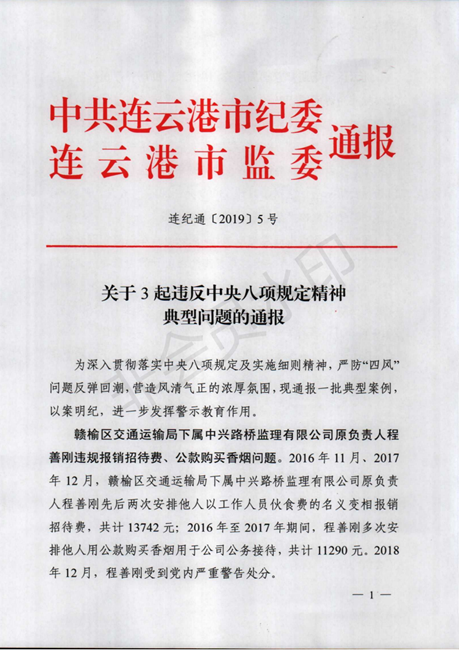 【學習教育】關于3起違反中央八項規定精神典型問題的通報