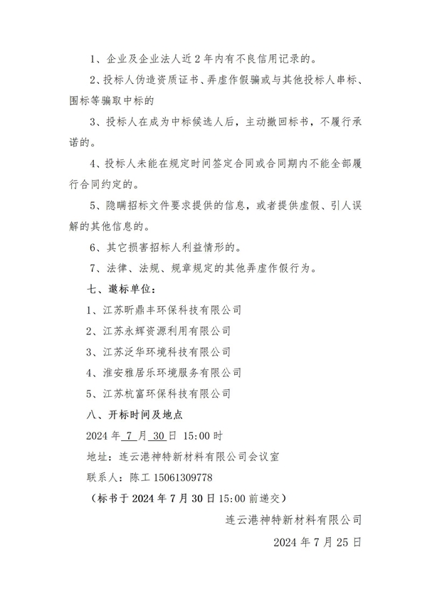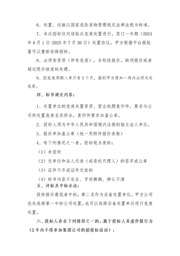 神特公司2024年危廢處置服務招標公告(二次)