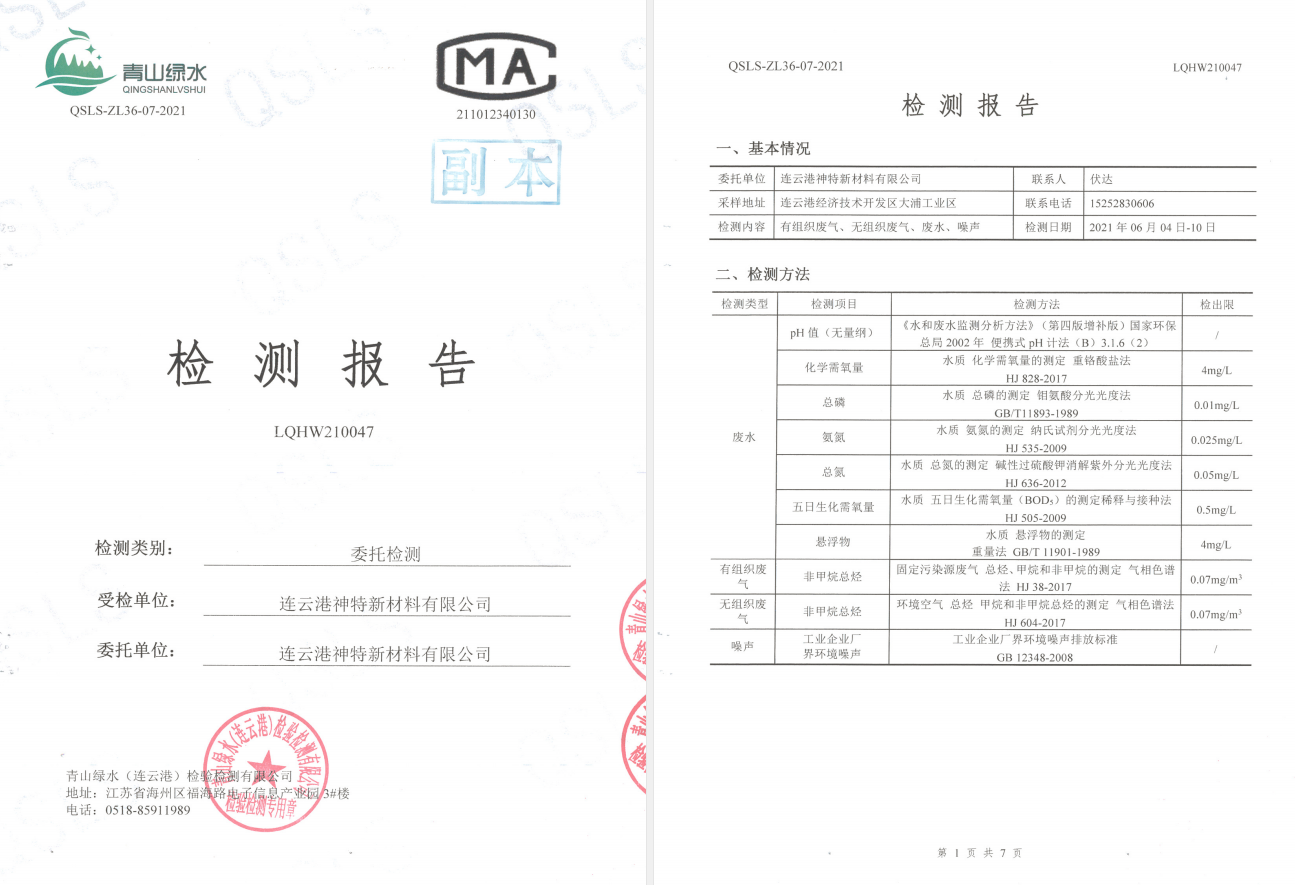 神特公司檢測報告公示