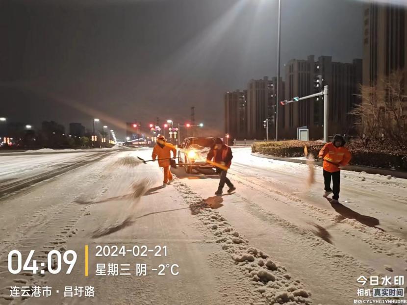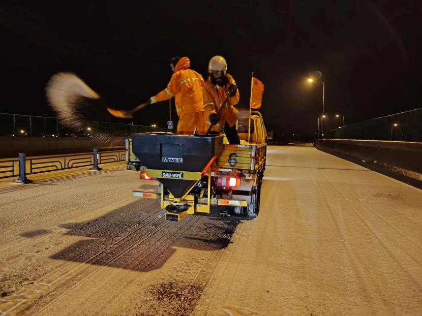 受寒潮影響,2月20日下午,港城普降“冰雪+冰粒”,投資公司第一時(shí)間啟動(dòng)惡劣天氣應(yīng)急處置預(yù)案,道路保潔、市政養(yǎng)護(hù)、后勤保障等戰(zhàn)線的干部職工以雪為令,在重點(diǎn)區(qū)域、重點(diǎn)路段、坡道、橋梁、涵洞等結(jié)冰路段進(jìn)行撒鹽融雪融冰作業(yè),全力以赴除冰雪、防事故、護(hù)平安,為市民群眾出行一路“護(hù)航”。