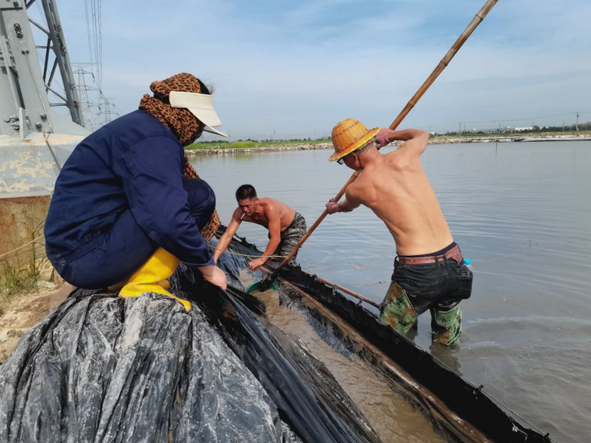回程途中,我們又經(jīng)過鈣液生產(chǎn)灘地,廣大職工在鈣液銷售旺季,趕進度、搶工期。在海濱泵站,徐松保師傅正在室外查看鈣液計量表,為鈣液車開具單據(jù)。據(jù)了解,他一天在室外要為20余輛鈣液車開單子,中午吃頓飯出出進進幾次才能吃完,衣服濕了干,干了濕,十分辛苦!在先鋒泵站,程輝師傅撩起工作服擦了擦臉上的汗水,繼續(xù)將潛水泵安置到已廢棄的灘地里,把灘地里的雨水抽干,將廢棄的灘地利用起來晾曬低濃度的鈣液,解決銷售旺季成品鈣液供不應求難題。用廣大職工的話:天氣再熱,困難再多,也擋不住我們沖刺生產(chǎn)18萬方鈣液的腳步。