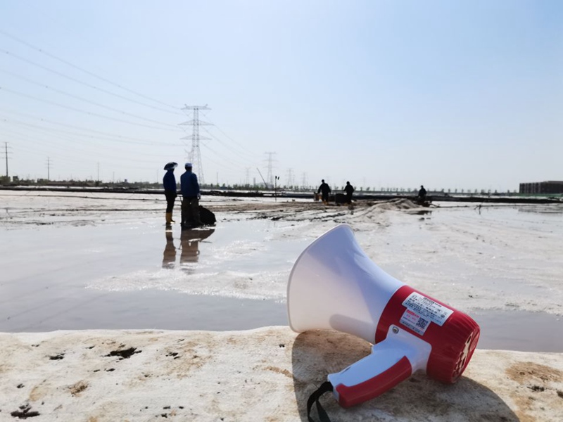 “小喇叭”通過藍牙連接“學習強國”,每天進行三次播報,根據扒鹽白班、小夜班、大夜班三個班次輪流播報,每次播報30分鐘,讓廣大職工既不耽誤工作又能聽見黨的故事,學習黨的歷史,交流黨的思想,真正讓黨的好聲音在灘頭池間落地生根,深受廣大職工一致好評!