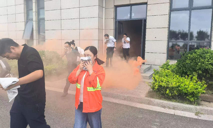 本次演練模擬公司辦公樓三樓電纜井因電路故障引發火情組織職工開展應急疏散。“起火啦!”15時許,辦公樓三樓一電纜井內突然涌出滾滾濃煙。臨近人員發現著火后,第一時間使用滅火器進行撲救。濃煙觸發自動報警裝置,消防控制室值班人員接到警報后,立即通知志愿消防隊伍趕赴現場撲救,并撥打報警電話,向應急指揮部報告。公司應急指揮部立即啟動應急預案,滅火搶救組、安全救護組、緊急疏散組等應急小組隨即到位,有條不紊開展滅火、疏散等工作。消防救援隊伍到達現場后,接過現場指揮權,開展滅火救援。安全搶救組搜索受傷人員,并對受傷人員簡單急救后送往醫院進行治療,緊急疏散組立即組織辦公大樓人員,用濕毛巾捂住口鼻從應急通道撤離。10分鐘后,險情排除,應急救援結束。最后,組織部分人員開展滅火實操演練